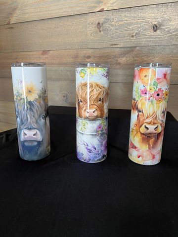 Tumblers are 22 oz cups. We can create any design. Contact us for details.