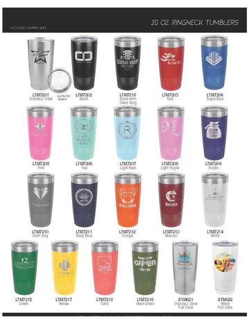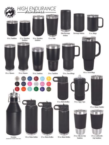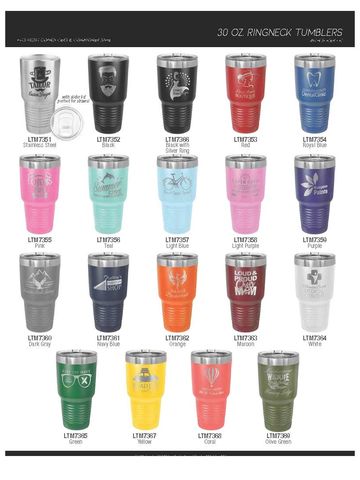 We have various shape and sizes for our tumblers, plus 19 color options to choose from.