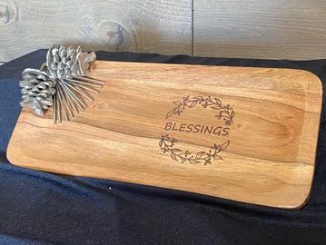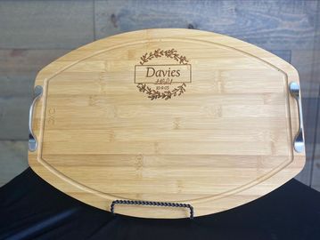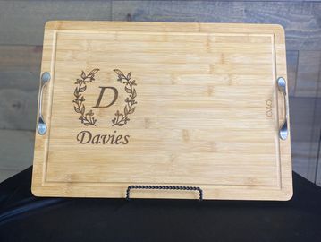 We carry multiple sizes of Charcuterie Boards, you can have with or without handles. Message us for details.